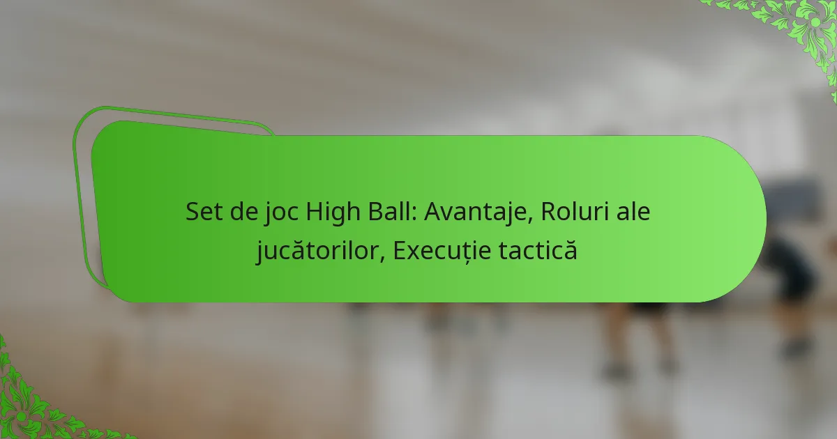 Jocurile de tip high ball set sunt mișcări strategice în sporturi care implică acțiuni coordonate între jucători pentru a crea oportunități de punctaj prin pase sau aruncări înalte. Aceste jocuri nu doar că îmbunătățesc șansele de a marca, dar și dinamica echipei prin exploatarea slăbiciunilor defensive. Executarea eficientă depinde de roluri clar definite pentru jucători, asigurând o comunicare și o mișcare fără cusur pe parcursul jocului.